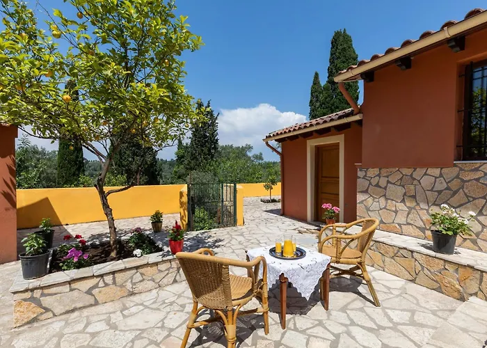 Die Charming Villa In A Traditional Village, 3 Km From The Beach Of Agios Gordios bietet außerdem eine voll ausgestattete Küche mit einem Herd. Gäste können im Restaurant Strivodikion speisen, das gleich neben der Villa in Kouramádes ist. Außerdem befindet sich die Bushaltestelle Kouramades ungefähr 200 Meter von der Unterkunft entfernt.
